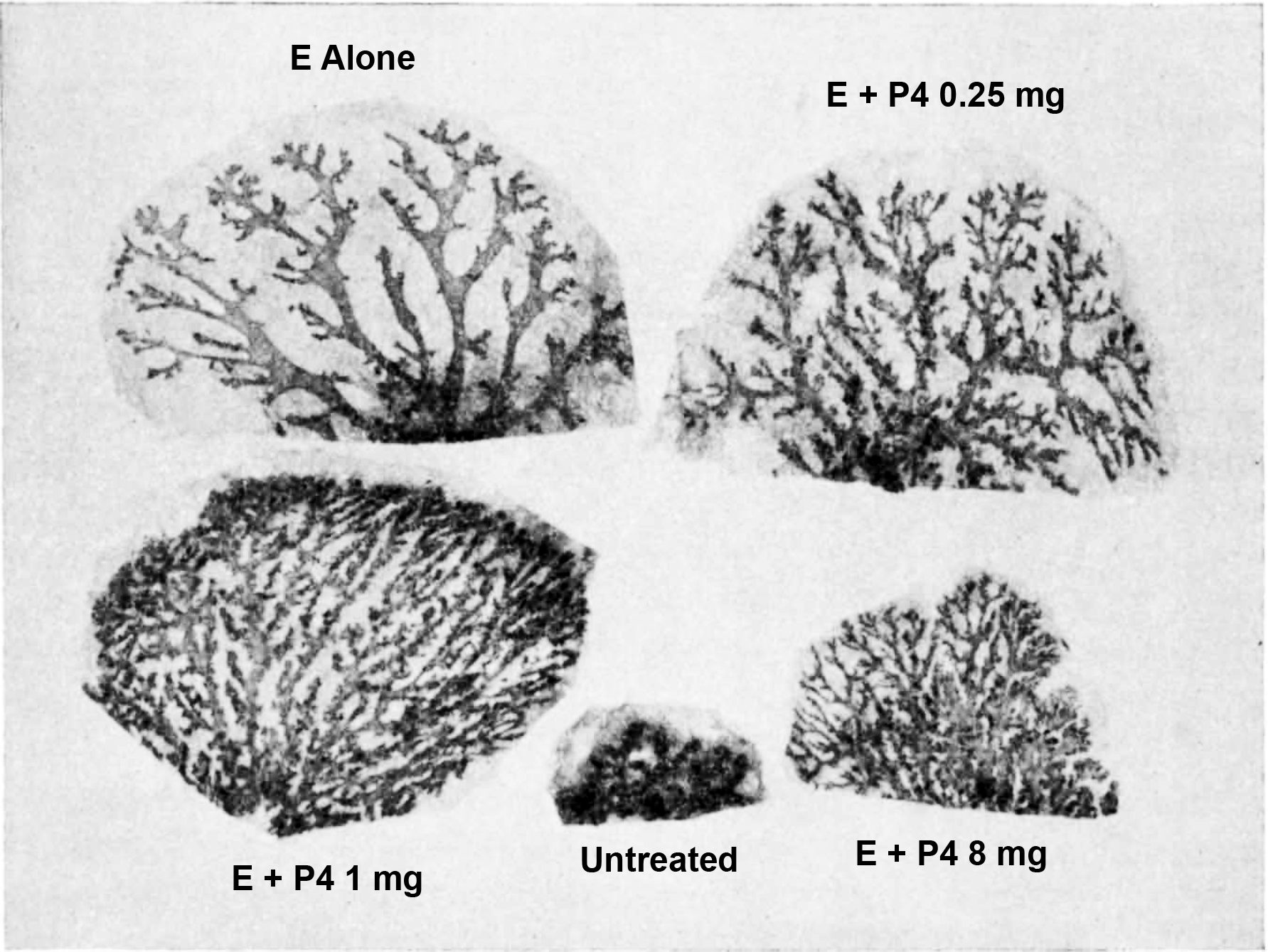Note: A citing review indicated that 1 IU progesterone is equal to 1 mg progesterone (Pfeiffer, 1943).